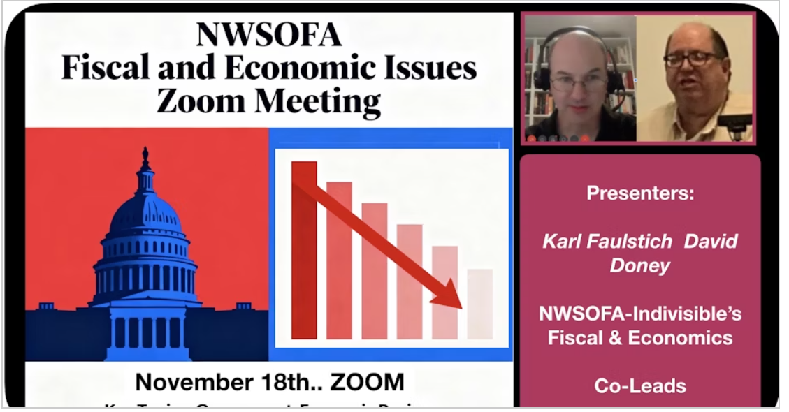 The NWSOFA Fiscal and Economic Issues group will meet on Zoom, Tuesday, November 18th @7 pm. The Zoom room will open by 6:55 pm.