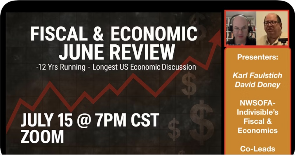 Tuesday, July 15th@7 PM CDT – Zoom: Fiscal & Economic June Review – 12 Yrs running – Longest US Economic Discussion running.. BBB, Deficits, Wars, Chaos, Tariff Wars, Axing Gov’t, retributions, dismantling controls